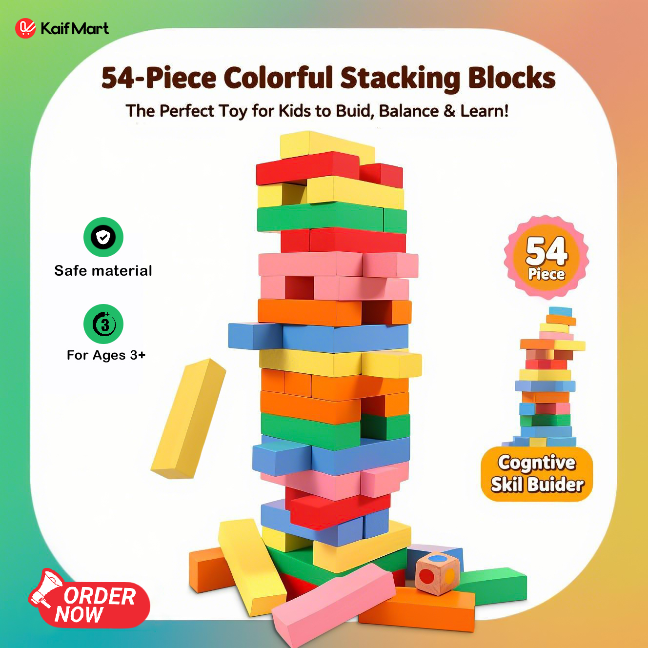 - SQUARE SHAPED BOX: Includes 54 Wooden blocks and easy-to-use stacking sleeve to help players build the tower.