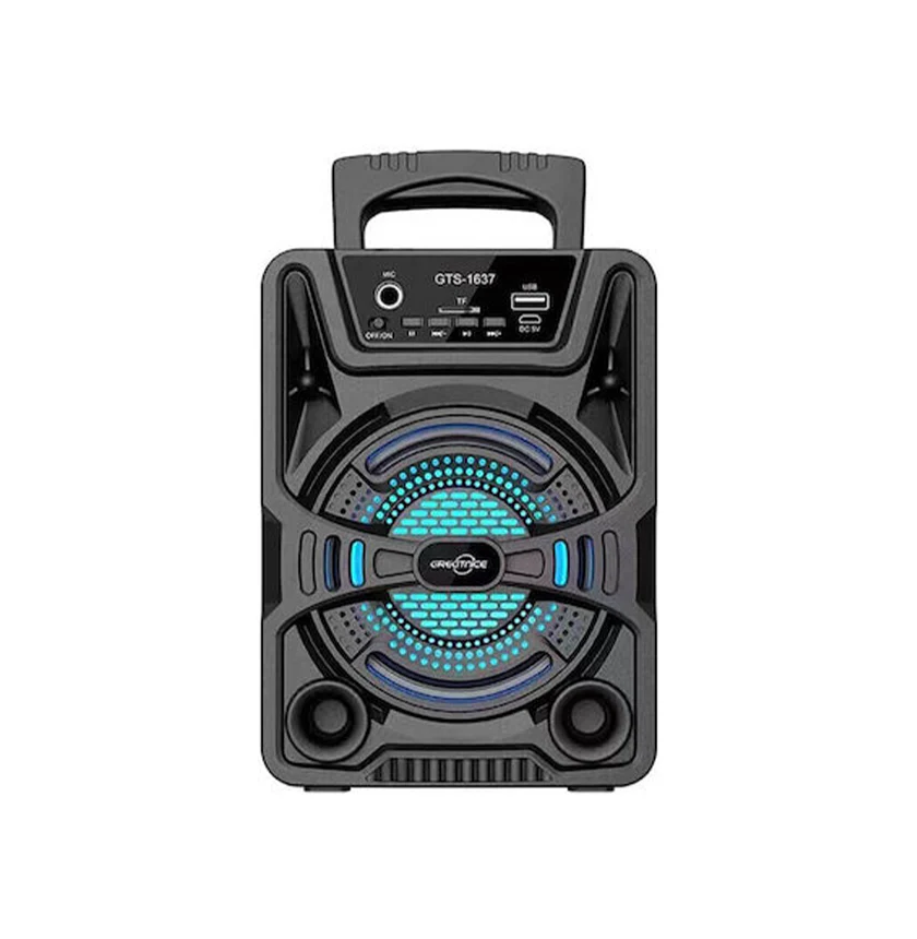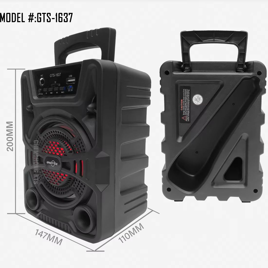 2. Audio: GTS-1557 has 3" speakers (×2) with a 1200 mAh battery. GTS-1558 has 5W output (3" speakers ×2) with 800 mAh battery. GTS-1637 features a 10W output (5W×2) and includes an 800 mAh battery, as well as a microphone and remote control.