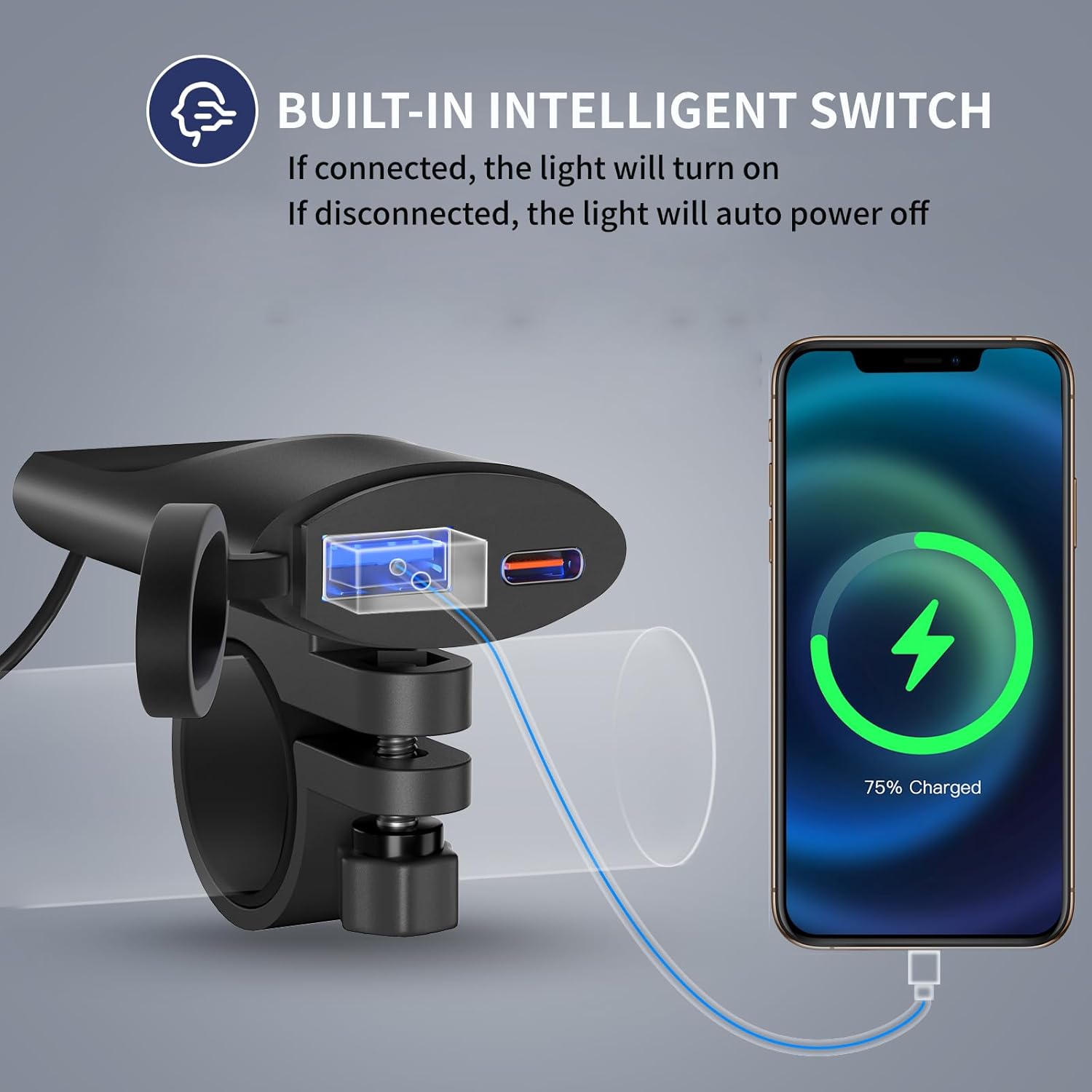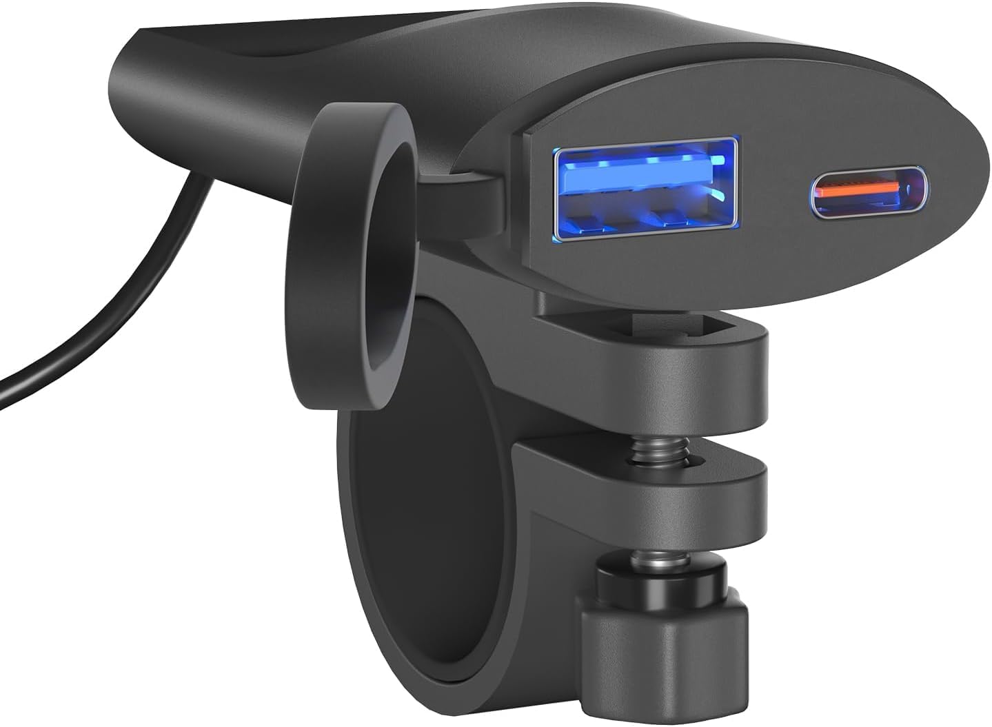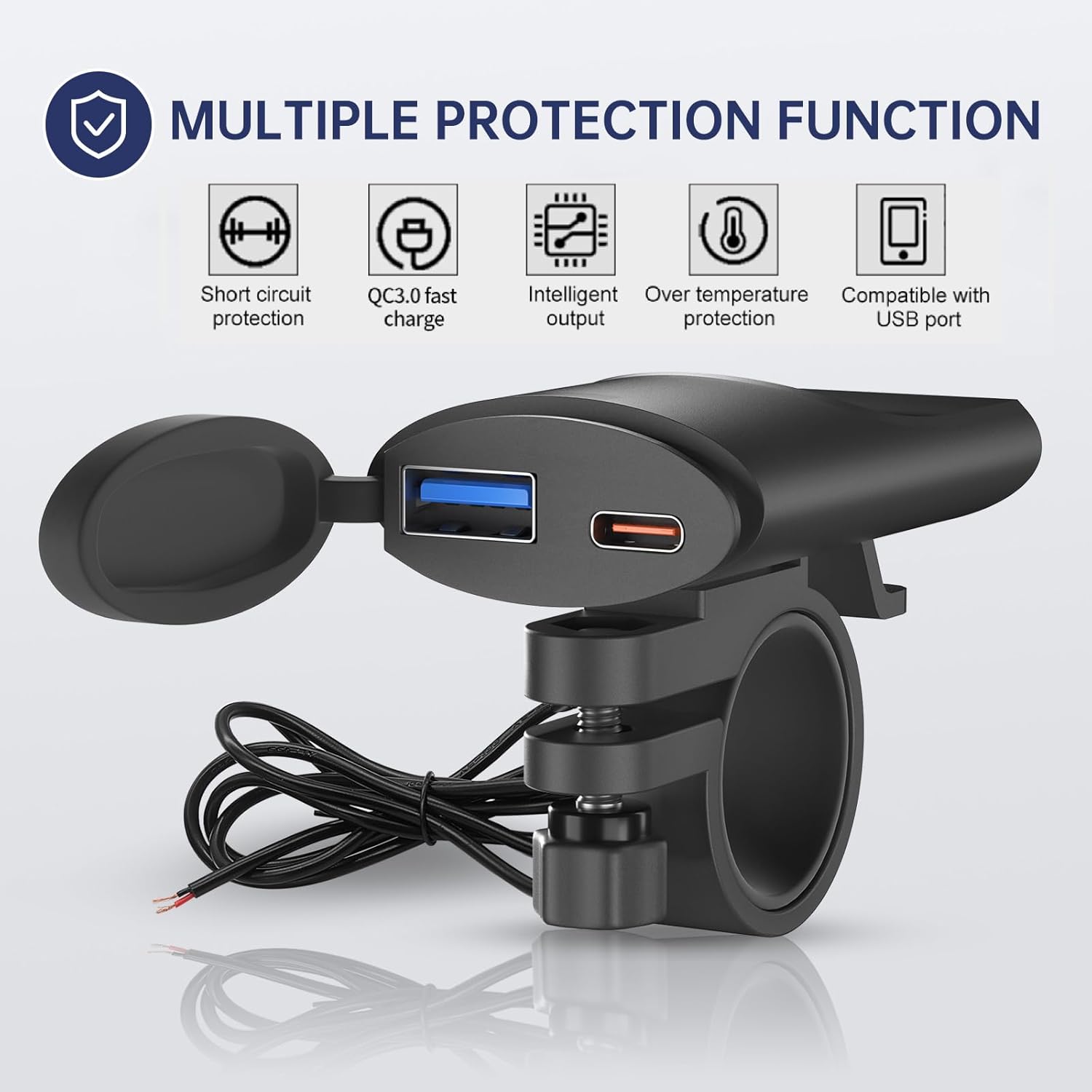 - SAFE & RELIABLE - Made of high grade ABS material, scratch resistant. Intelligent IC technology maximizes charging efficiency, the 2-port USB A+C motorcycle phone charger undergoes rigorous control testing to ensure safe charging and provides a robust protection system against short circuit, overheating, overcurrent and overcharging.