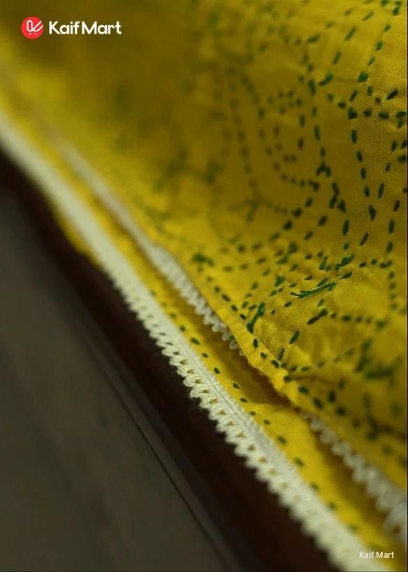 Bring home the elegance of Bangladeshi tradition with this Handmade Nakshi Katha. Beautifully hand-stitched on a rich red fabric, decorated with vibrant floral designs in yellow and green threads.
