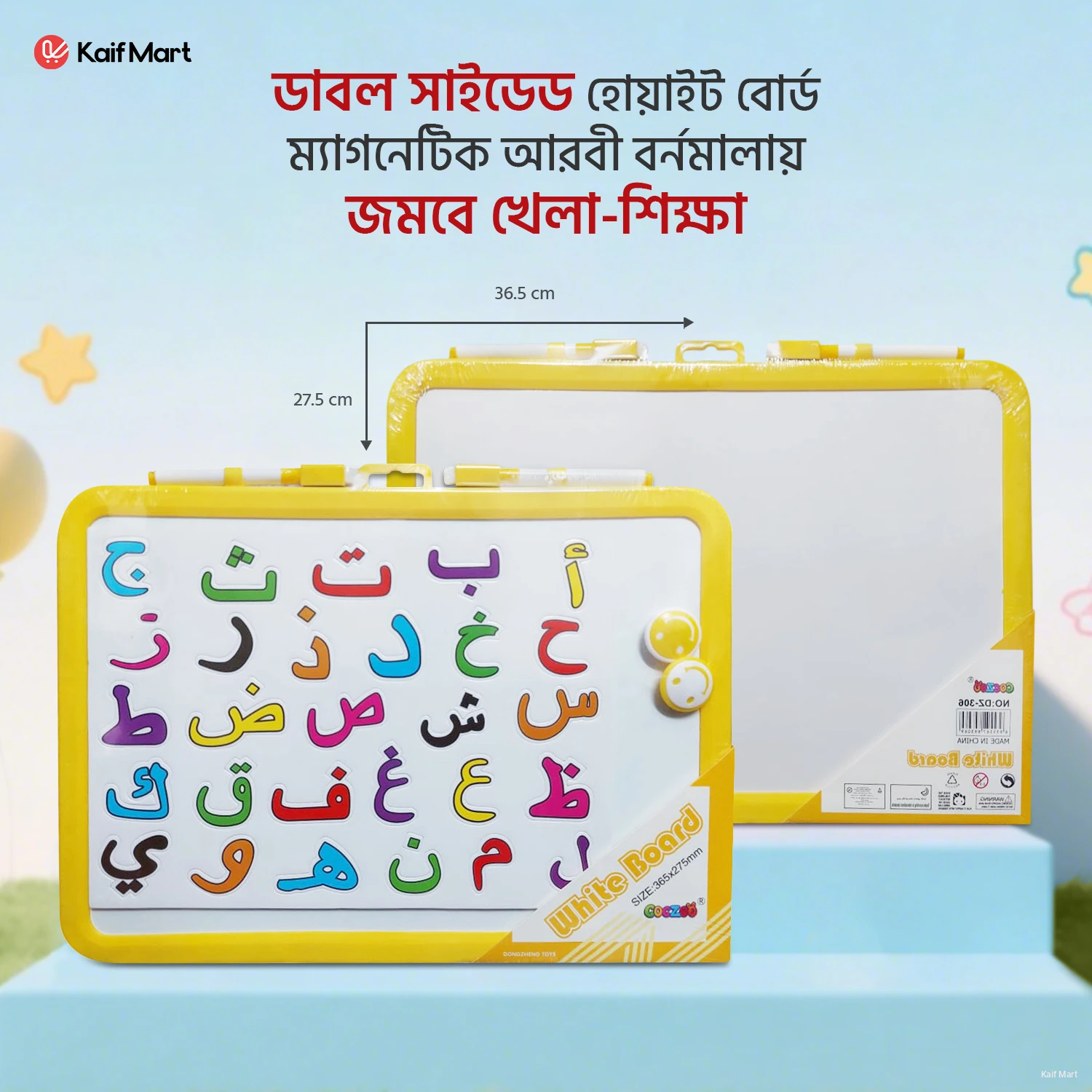 Double Sided White board with Magnetic Arabic Letters (14"...